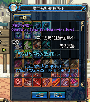 歌兰蒂斯NPC的挑战书、破魔石、DNF70版本第十三章全部可兑换的所有职业的史诗武器、史诗首饰。
