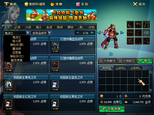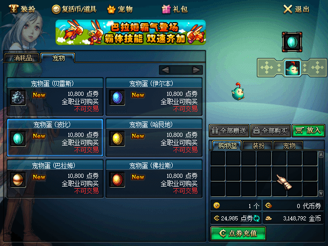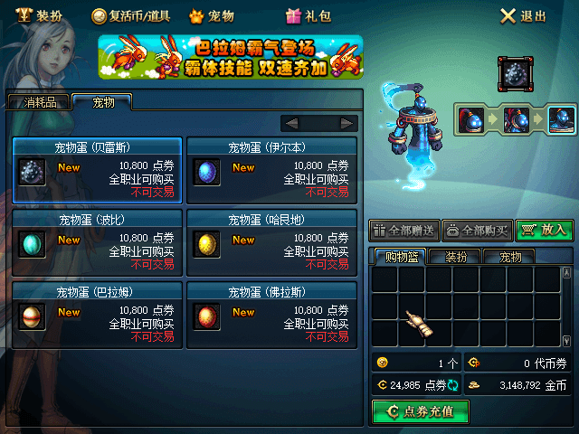 商城内容和细节介绍,包含DNF70版本的原版宠物。